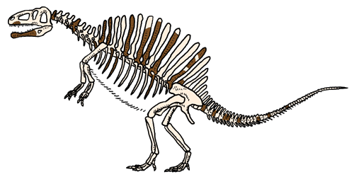 Auf dem Bild oben sind die bisher gefundenen Fragmente dunkelbraun gekennzeichnet. Von daher kann bislang niemand mit Bestimmtheit sagen, ob Spinosaurus tatsächlich 15 Meter lang wurde oder vielleicht 2 bis 3 Meter kürzer war.Viele Grüße,