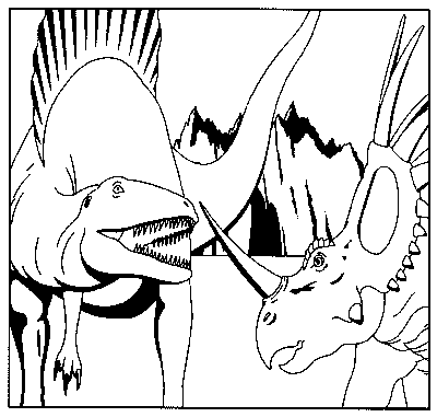 > näherer Begriff.Da muss ich dir uneingeschränkt recht geben. Auch ich bin überzeugt, dass mit dem Begriff „Spinosaurus“ nur die wenigsten irgendeine bildliche Vorstellung verbanden. Ich muss zugeben, dass auch ich den Spinosaurus noch nicht ewig kenne. Auf der Suche nach den ersten Bildern für meine Seite fand ich eines, auf dem ein zweibeinig laufender Rückensegel-Saurier zusammen mit einem Styracosaurus (Oberkreide) abgebildet wurde (Bild oben). Bis dahin kannte ich nur den Edaphosaurus aus dem Karbon/Perm als Saurier mit Rückensegel. Daher machte ich mich auf die Suche nach einem Rückensegel-Saurier aus der Oberkreide und traf somit auf den Spinosaurus.