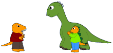 Er schien zu stutzen, als er die beiden Pflanzenfresser vor sich sah: Die Camarasaurus-Dame, die ungefähr doppelt so groß war wie er selbst − und Stego, der eine ähnliche Größe hatte wie er, dafür aber einen Schwanz mit langen, heftigen Stacheln besaß.