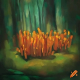 Pilogi-Pflanzen: kleine, orange, magische Pflanzen, wachsen in hellen Wäldern