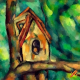 bewohnen kleine Häuser, die in Astgabeln von Bäumen gebaut sind
