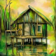 bewohnen mit Moos bewachsene Holzpfahlbauten
