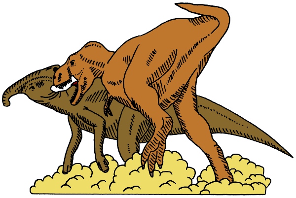 Tyrannosaurus greift Parasaurolophus an