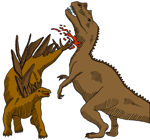Stegosaurus verteidigt sich gegen einen Ceratosaurus