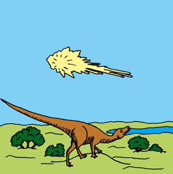 Die Asteroidenhypothese (auch: Meteoritenhypothese) ist eine von mehreren Ideen, die versuchen, das relativ plötzliche Aussterben der Dinosaurier zu erklären. Die Asteroidenhypothese meint: Vor 65 Millionen Jahren fiel ein Asteroid oder Meteorit auf die Erde und ließ das Klima auf der Erde so kalt werden, dass die Dinosaurier ausstarben. |