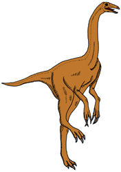 Der Deinocheirus war 7 bis 12 (vielleicht auch 20) Meter lang und wog 9 Tonnen (= 9.000 Kilogramm). Er lebte vor ungefähr 70 Millionen Jahren in der Oberkreide. Fossilien wurden in der Mongolei (Asien) gefunden: Vorderarme, vielleicht auch einzelne Rippen und einige Wirbel von einem einzigen Tier. Der Deinocheirus lief auf zwei Beinen, gehörte zu den Echsenbecken-Dinosauriern und fraß Fleisch. Sein Name "schreckliche Hand" geht auf die gefundenen 2,5 Meter langen Vorderarme zurück. Zum ersten Mal wurde der Deinocheirus 1970 beschrieben. |