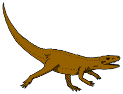 Das Euparkeria war ungefähr 60 Zentimeter lang. Es lebte vor 245 - 235 Millionen Jahren in der Untertrias. Das Euparkeria gehörte zu den Archosauriern, aber nicht zu den Dinosauriern. Ob es ein Vorfahr der Dinosaurier war, konnte bislang noch nicht geklärt werden. Fossilien vom Euparkeria wurden in Südafrika gefunden. Das Euparkeria lief vermutlich meistens auf vier Beinen und fraß Fleisch. Zum ersten Mal wurde das Euparkeria im Jahr 1913 beschrieben. |