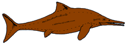 Der Ichthyosaurus lebte im Meer, sah ähnlich aus wie ein Delfin und fraß Fische und andere Meerestiere. Er gehörte zu den Fischechsen und war somit kein Dinosaurier. Zum ersten Mal wurde der Ichthyosaurus 1821 beschrieben. |
