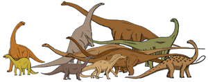 ![]() Einige Sauropoda: Barapasaurus, Isanosaurus, Brachiosaurus, Barosaurus, Argentinosaurus, Diplodocus, Apatosaurus, Camarasaurus, Amargasaurus, Alamosaurus, Antarctosaurus |